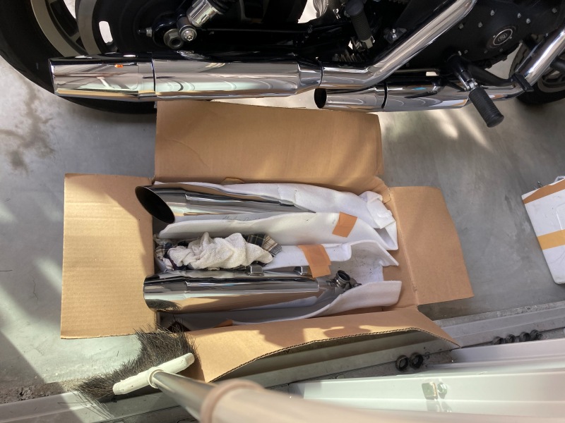 先ずは、いつものノーマルマフラーへの交換だ!
