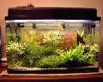 こちらがクリスタルレッド水槽です。同居している熱帯魚は、オトシン、ハチェット、ピグミーコリドラス。