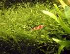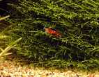 ビーシュリンプの突然変異のクリスタルレッドです。ウィローモスの苔で食事中?