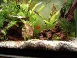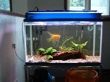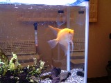 2階、サーバーの手前にあるもう一つの水槽。買った頃2〜3センチのエンゼルフィッシュも今では10センチ位にもなりました。