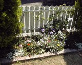 アリッサム、ガザニア、ビオラ、そして白のクレマチス