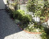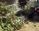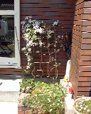 東隣のお家に邪魔にならないようにするために開花したらすぐに切り取られてしまうつるバラ。