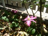 バラの花の根元のピンク(紫?)のクレマチスは今年も健在!