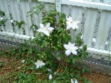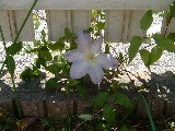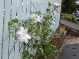 昨年業者の方に庭をお願いした時にすっかり根ごと抜かれたと思っていた白いクレマチスが運良く根っ子が残っていたらしく芽を出しどんどん伸びて柵を越え出しました。