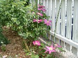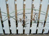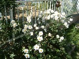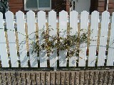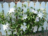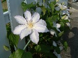 白いフェンスにからませる白いクレマチス。今どんどん育っています。