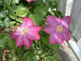 ピンクのクレマチスがつぼみを8〜9個もつけています。