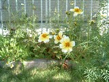 種類を忘れてしまいましたが常緑のクレマチスが又今年もいくつか咲いていました。昨年も一輪だけしか咲かなかったのでこれで終わりかも?