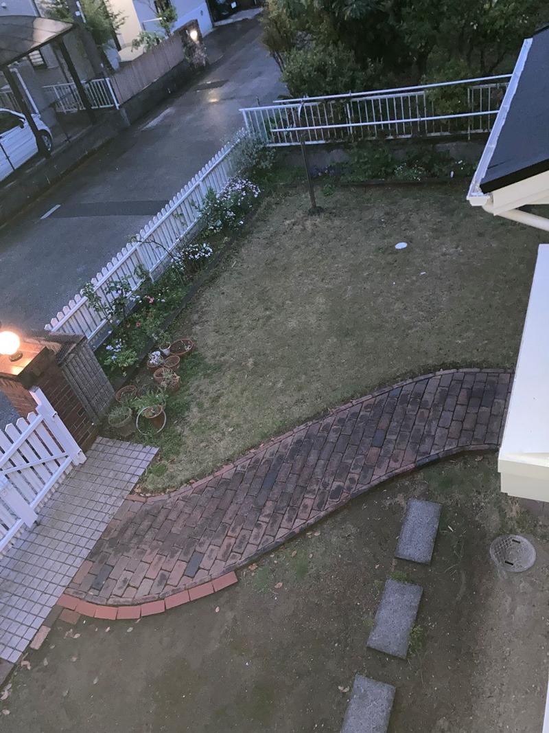アプローチにもレンガの間から芝生が広がっていたが、昨年末から自分で少しずつ取り除き