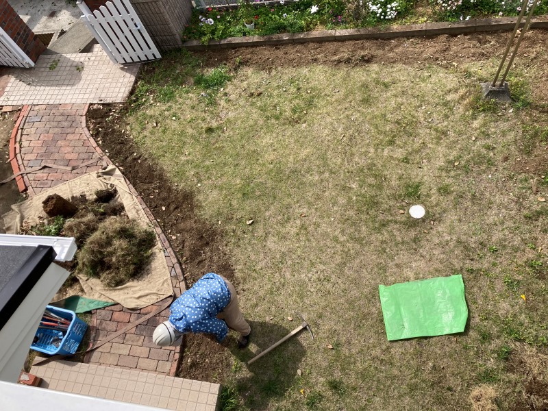 すっかりきれいに芝生ははがれた。 エゴノキを植える場所はここだ!