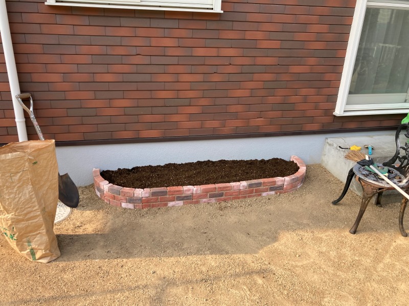 レンガを積んで、セメントで固めやりたいと思っていたが