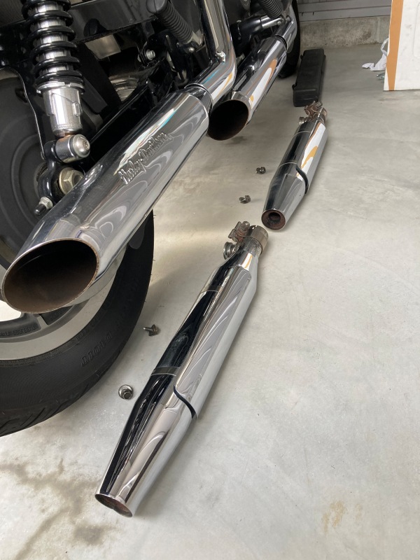 先ずは、いつものノーマルマフラーへの交換だ!