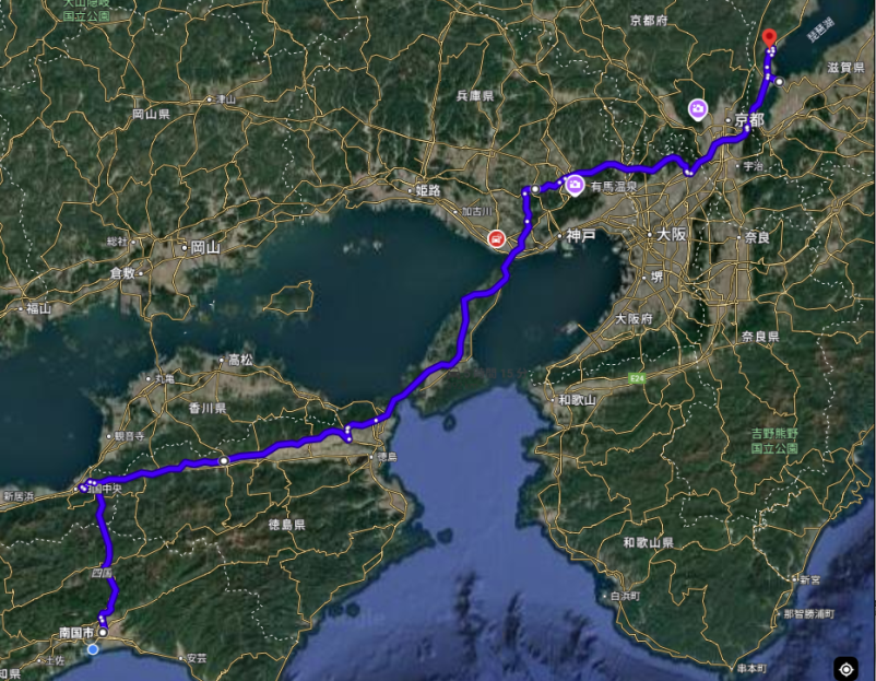 帰り道は京都近辺の高速道路が地図とは少し違うがまあ良いか。