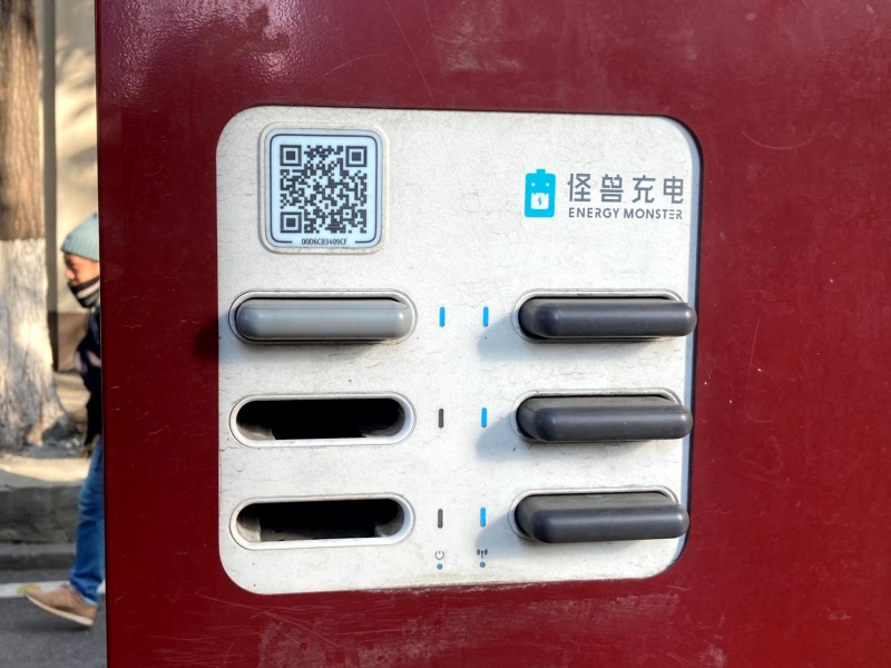 バス停などに、このシェアーモバイルバッテリーの貸出機が設置されているみたいです。