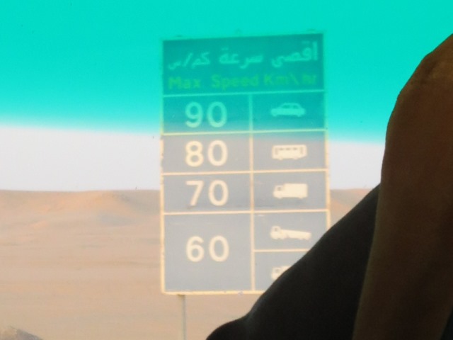 こんな何もない砂漠の道路にも、スピード制限の標識がありました。