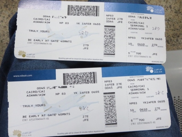 カイロ→アスワンのチケットです。