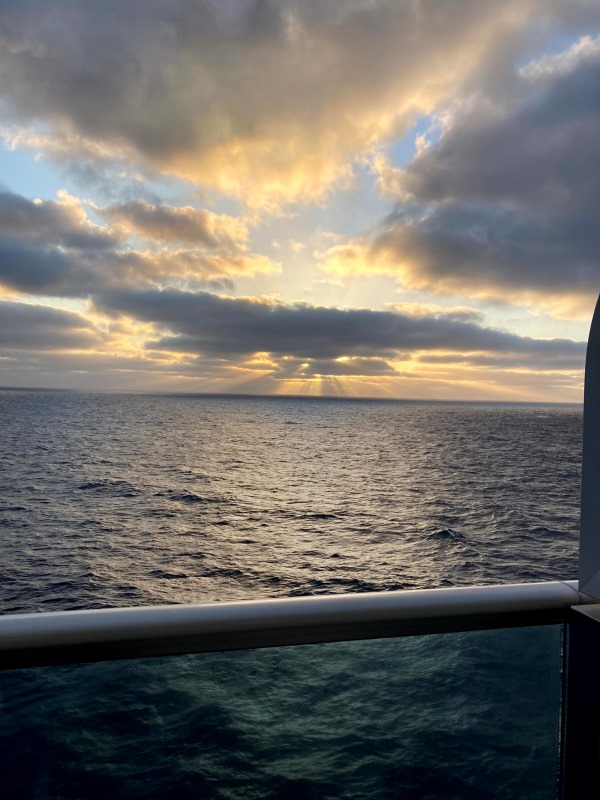 多少雲がかかっているが船上から眺める朝の光は久しぶりで気持ち良い!