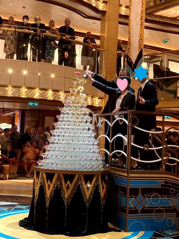 希望者にシャンパンを注がせてくれるので私たちも並んで注がせてもらった。