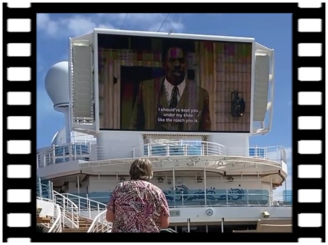 リド・デッキ16で映画を上映してたので少しリクライニングデッキチェアーに寝そべって観ました。