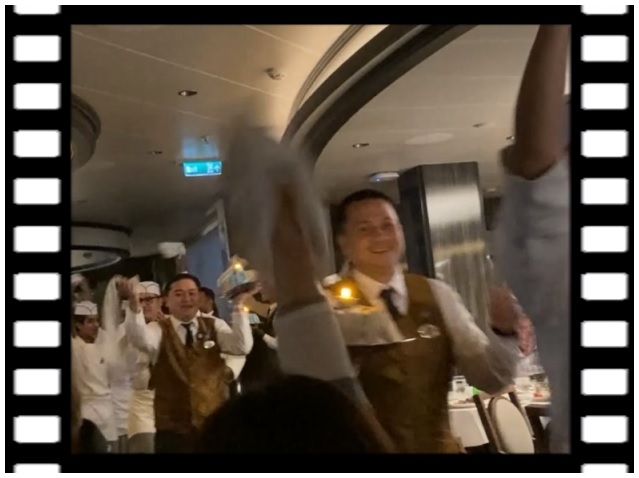 食事中に、突然始まったダイニング乗組員(コックやウェイター)のパフォーマンス!