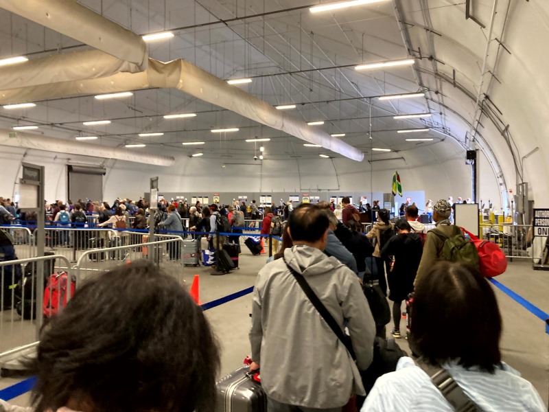 ここでは、シャトルバスに乗る前にセキュリティチェックを行います。