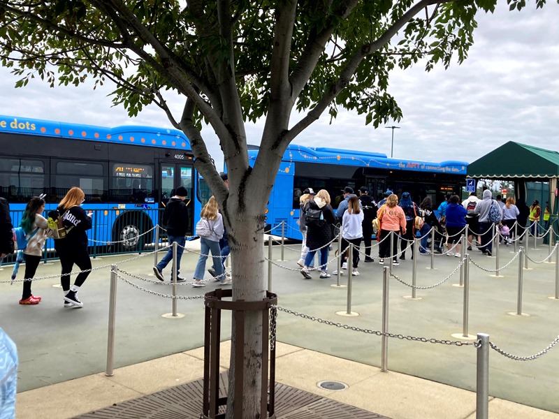 この駐車場で、シャトルバスに乗換えてカリフォルニアディズニーランド・リゾートに行きます。