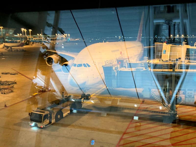 飛行機は、アシアナ航空「エアバスA380−800」でした。