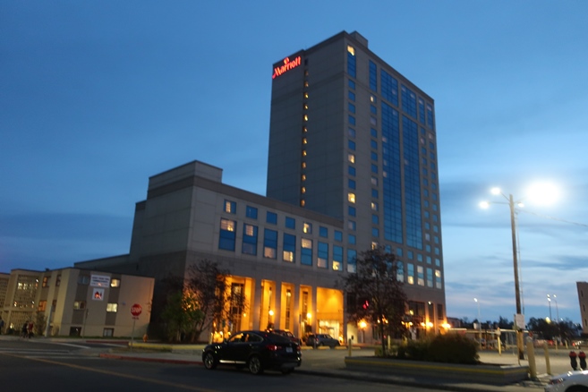 2連泊目のホテル「アンカレッジ マリオット ダウンタウン」外観です。
