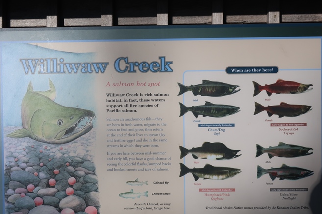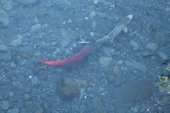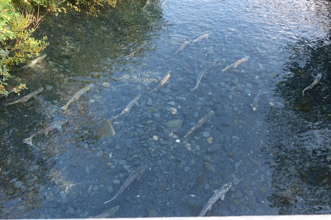 途中、運が良ければ「サケ(サーモン)」が川を上っているのが見られるかもしれないということで