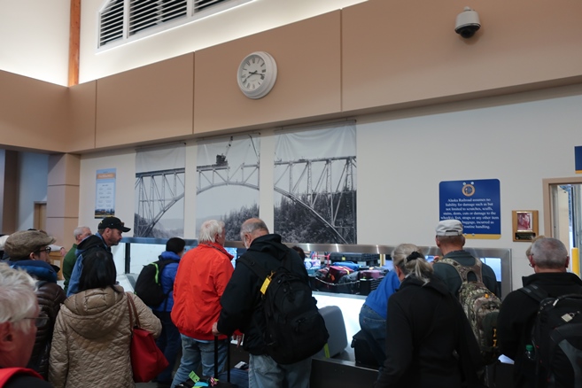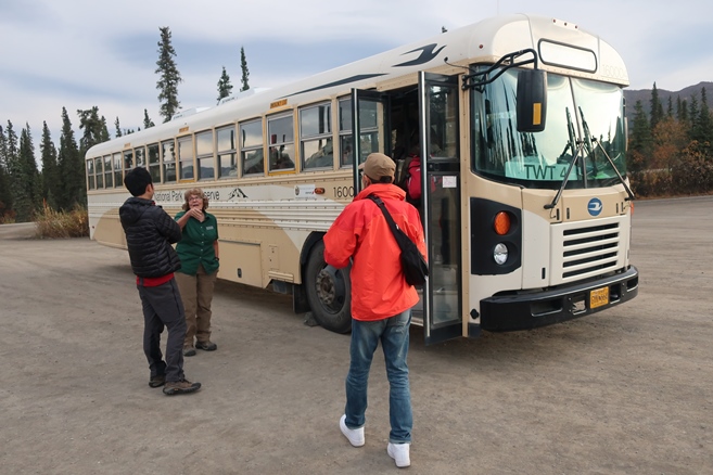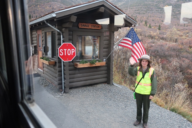 シャトルバスに乗って「アラスカ鉄道」の「デナリ駅」に向かいます。