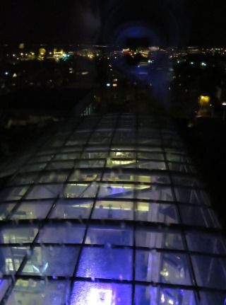 部屋からの景色 ロビー前は5階分の吹き抜けになっている 天井はガラス張りなので下が良く見える |