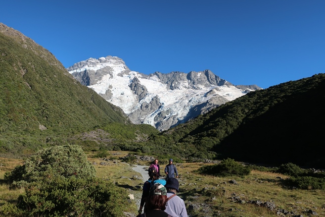 雲一つないマウント・クックの雄姿を見られた私たちは、超ラッキーでした!