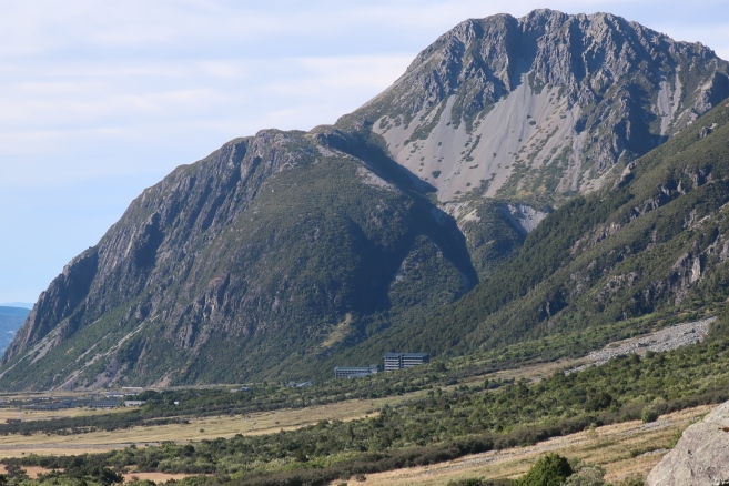 左のなだらかに見える山は、「セフトン山」、右端のとんがり山が「マウント・クック」だ。