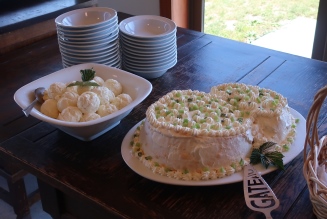 昼食、そして「羊の毛刈りショー」、「牧羊犬の羊追い」等が見られます。