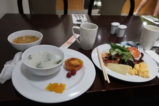 また、和食があったので、おかゆ、梅干し、みそ汁を先に取ってから