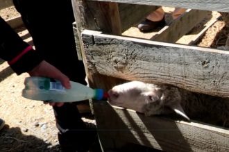 子羊にミルクを上げました。すごい吸引力!あっという間になくなりました。