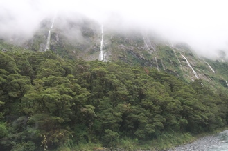 ミルフォード・ロードを進むと、次々と大小の滝が現れる。