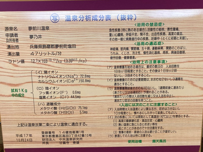 宿泊は塩田温泉郷 夢前川温泉、兵庫県姫路市夢前町にある温泉だ。