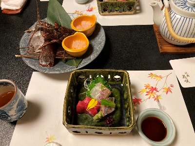 こちらの伊勢海老のお造り、まだ動いていました! シマアジ、マグロ、タイ |