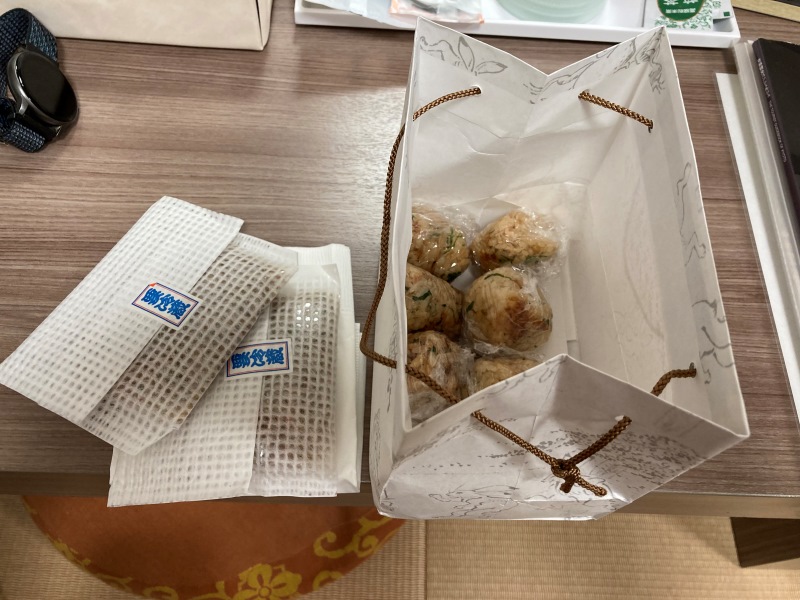 残った釜めしは、一口サイズのおにぎりにしてくれました。 おまけに自家製の佃煮を頂きました。 |