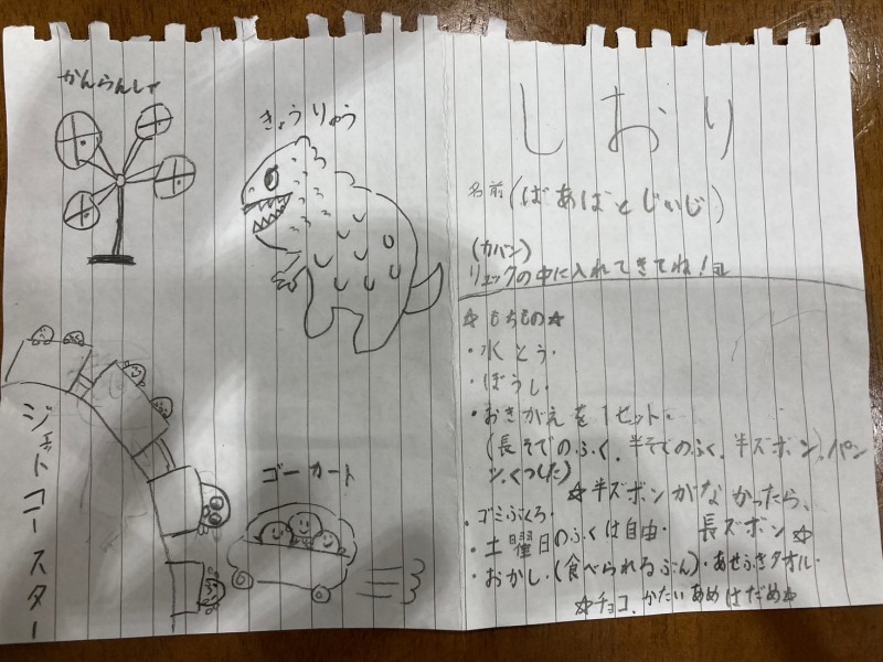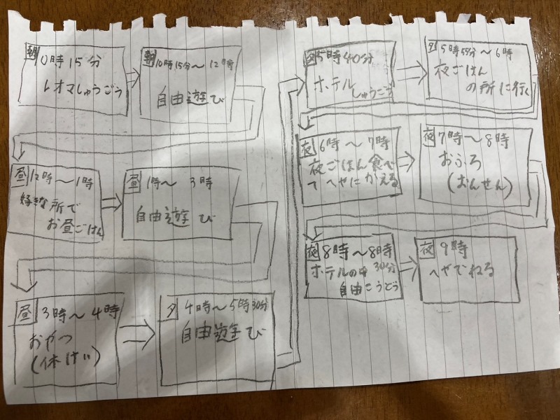 この旅行にあたり、Yちゃん(孫のお姫様)が可愛いスケジュール(しおり)を作ってくれた (*^_^*)