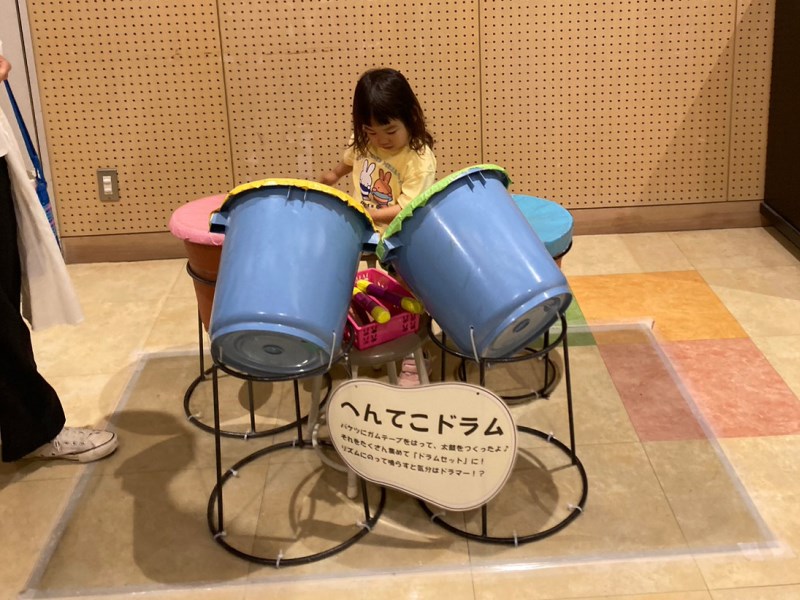 館内の「音楽工房」では、@ちゃんがドラムをいじって(叩いて)います。