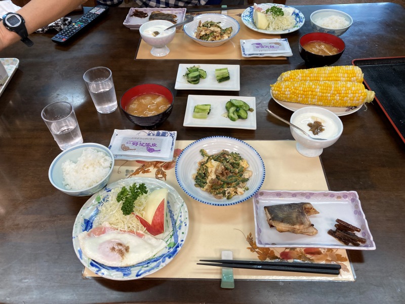 朝市から帰ってくると丁度朝食の準備ができていました。