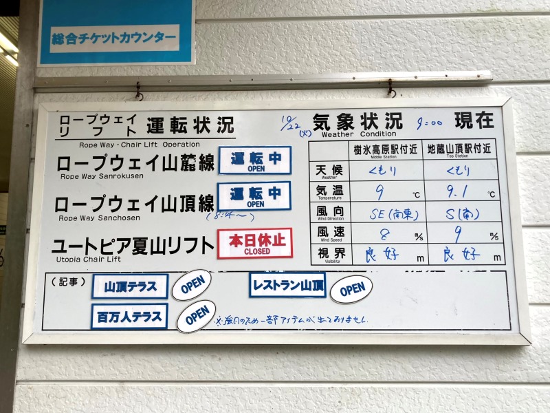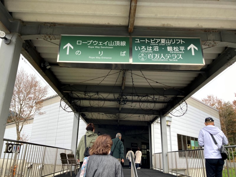 樹氷高原駅に着くと乗換えで地蔵山頂駅行きのロープウェイに乗換えます。