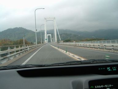 これは、1270mの因島大橋(吊橋)で〜す。