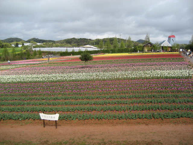 | 『ちょっとそこまで広島旅行』 今回は岡山のお知り合いへのご挨拶を兼ねていたので 1日目は広島のホテルに行くので精一杯だった。 朝9時ごろ出発! 岡山で3箇所ご挨拶に回ったのでやはり時間がかかってしまった。 宿泊は東広島のビジネスホテル・・・安かったのは良いけどねえ・・・ 夜、宿泊階が2度もブレーカが飛んだのだ。 夜食は、西条駅近くの「おこのみ たまたま」 山のようなキャベツにビックリ!なかなか美味しかった。 もうお腹一杯になった! 会社は正月以外は稼動している! 当然サーバー類は定期点検時の約3時間以外は常時稼動 休みが取れても代わりがいないので結局、遠隔操作でサーバーチェック。 連絡も容赦なく携帯電話にかかってくる。 「トラブルありませんように・・・」と思いながら・・・ サービスエリアにて。 (1) 広島といえば原爆ドームと記念館!私のメイン。 ここに来るのは3度目だったと思う。記念館の資料を見るたびに 「戦争はいけない…」と心から思う。 (2) 今回の美恵ちゃんのメイン。 それが世羅高原農場! 今の時期はチューリップ祭 ちょっと天気が悪くて風が強くて寒かった… (3) この日、北海道でかなりの雪が降った。 鳥取でも台風なみの強風が吹いたようだ。 (4)