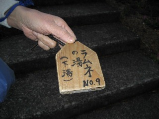 湯に入るにはこの鍵を受け取って入りに行きます。