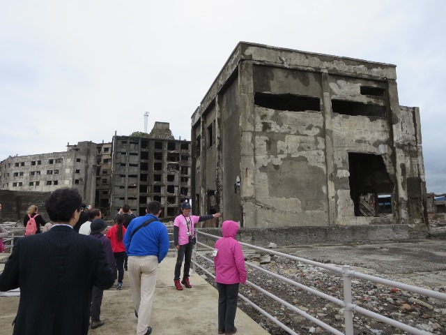 ついに軍艦島に上陸です。 ガイドさんが丁寧に説明してくれます。