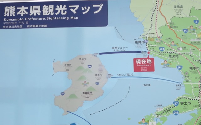 熊本県に入り、有明フェリーに乗船するために長洲港フェリーターミナルへ
