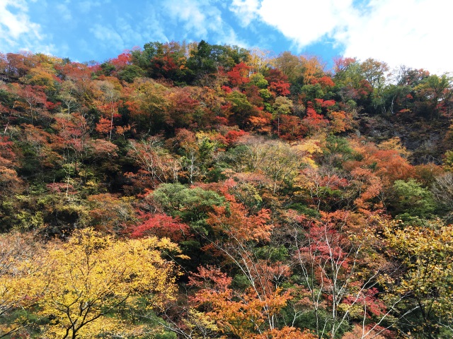 | 『またも別府峡』 昨夜は、雨が降っていたが今日は晴れている。 自宅から1時間10分くらいで到着! タイミング良く駐車場も良い場所に止められた 空の青さと紅葉と緑の色がとてもきれいだ! 駐車場の車の数の割には、それほど人はいない感じだ 風もなくそれほど寒くなくて良かった! 少しずつ、雲が広がってきた。 やはり、太陽光が当たっているほうが景色もきれいだ! こちらは、「もみじ茶屋」! 食事や休憩ができます。 今日は、ここで田舎寿司を買って自宅に帰って頂くことにしました。 茶屋の前では、そばまんじゅうとあめごの塩焼きが売られていました。 今年も朝いきなり紅葉見物決定でいい感じの紅葉を見ることができました! |