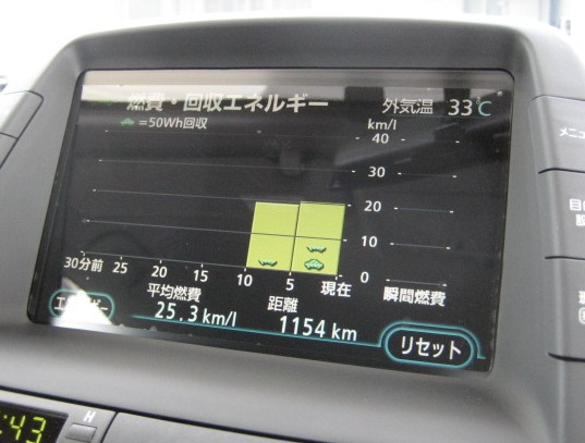 やっぱり夏!エアコン入れないわけにはいかない。冬ほどではないけど、燃費が落ちるなあ!